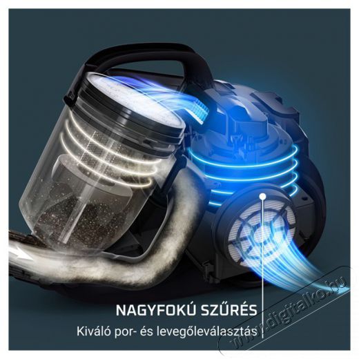 A Compact Power™ Cyclonic kivételes takarítást nyújt, kategóriája csúcsán. A nagy teljesítményű, hatékony szívófej kiválóan eltávolítja a keménypadlók mélyre benyomódott és nagy mennyiségű szennyeződéseit. A modern monociklon technológia kétszintű szűrést biztosít. Teljesítmény kivételes kényelemmel és egyszerű használattal: kompakt formátum a könnyű tároláshoz, fejlett, ergonomikus dizájn. Mostantól valódi erőt tart a kezében!