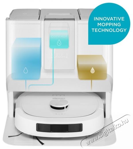 - A multifunkciós dokkolóállomás kiüríti a port, kiszivattyúzza a szennyvizet, kimossa és megszárítja a mopot