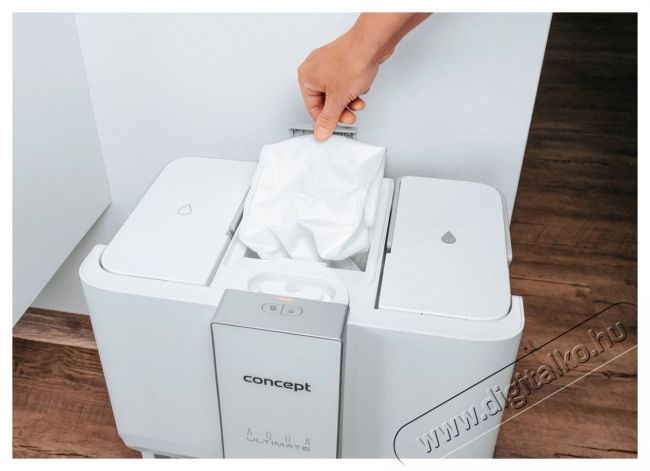 A Concept VR4130 3az1-ben Aqua ULTIMATE Laser 3D robotporszívó teljesen új szintre emeli a takarítást a professzionális padlómosó gépek technológiái által inspirált fejlett felmosórendszerének köszönhetően. A 200 cm²-es aktív felületű széles felmosópárna folyamatosan a padlóhoz simul, és a 20 N (kb. 2 kg) nyomásnak köszönhetően hatékonyan távolítja el még a rászáradt szennyeződéseket is. Takarítás közben a mop folyamatosan tisztul, így a padlót mindig tiszta felülettel törli. A higiénikus működést a tiszta és szennyvíz elkülönített tartályai biztosítják. A csomagban két speciális felmosó textíliát is találsz – egyet a kemény padlókhoz és egy másikat a kemény felületek és szőnyegek kombinációjához, hogy otthonod mindig tökéletesen frisslegyen.