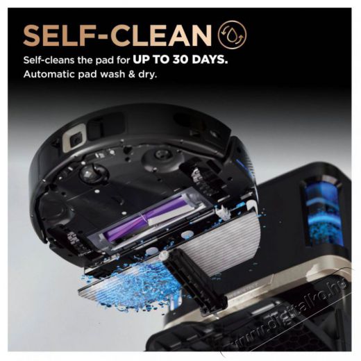 Az RV2800ZEEU NeverTouch Pro nagyméretű bázisa akár 60 napig tartó kényelmet garantálA Shark® robotporszívó egy rendkívül intelligens készülék, amely önmagát tölti fel és üríti ki. A nagyméretű NeverTouch Pro bázis akár 60 napig is képes önállóan működni, karbantartás nélkül. 30 napig tartja meg a tiszta vizet, a szennyeződéseket pedig 60 napig. A mopot minden használat után tisztítsd és szárítsa meg.
