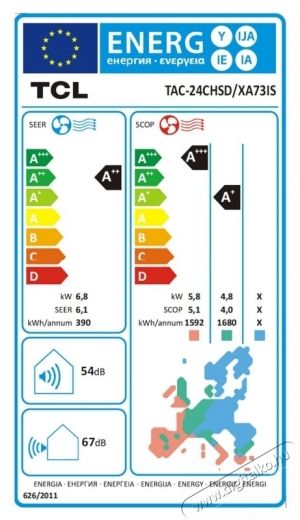 | Hűtési energiahatékonyság | A++ |