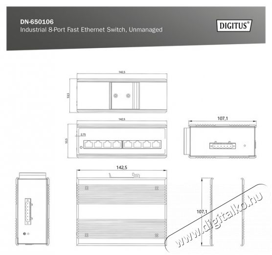 DIGITUS DN-650106 8port 10/100 falra szerelhető ipari switch