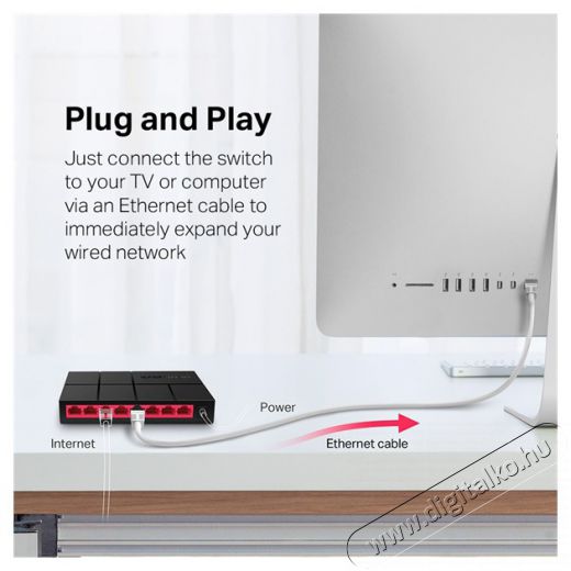 Plug and Play Felejtse el a bonyolult telepítést. Csak csatlakoztassa a switchet a TV-hez vagy a számítógéphez Ethernet kábellel, vezetékes hálózatának azonnal bővítése érdekében. Konfigurációra nincs szükség.