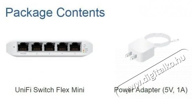 Az Ubiquiti UniFi Switch USW Flex Mini intelligens kapcsoló főbb jellemzői- 5 RJ-45 Ethernet port (10/100/1000Mbit)
