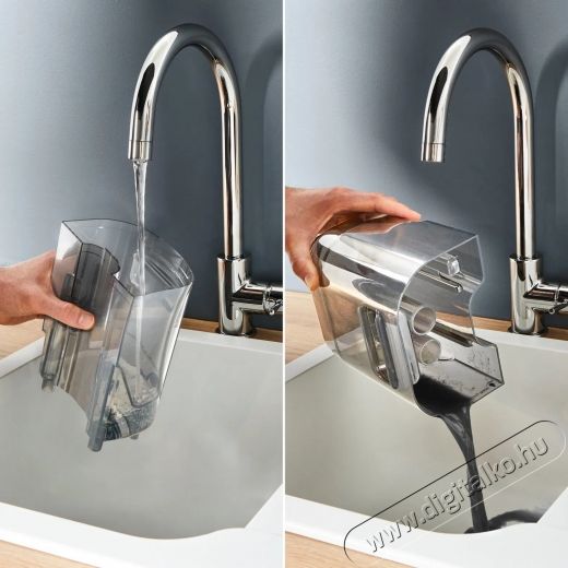 Az 1,4 literes tiszta víztartály és a 0,85 literes szennyvíztartály könnyen kivehető. A tisztítást folyamatosan végezheted, felesleges újratöltés vagy ürítés nélkül.