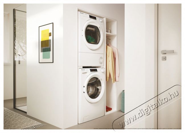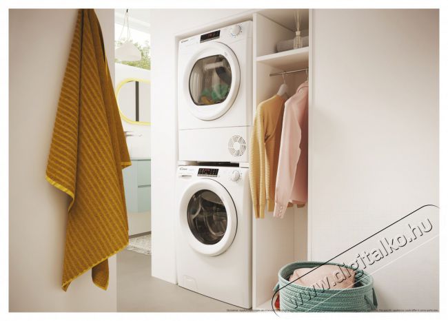 KOMPAKT MÉRET, KIEMELKEDŐ EREDMÉNYEKA csupán 49 cm mélységű készülék a keskeny mosógépek tetejére rögzíthető, így még több helyet takaríthatsz meg.