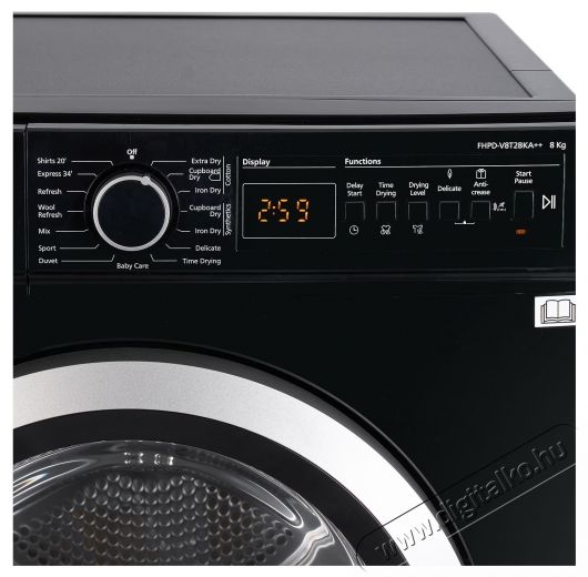 | Szárítási program | Pamut Sportruha szárítás Felfrissítő Vegyes Babaruhák Paplan Műszálas Finom Expressz szárítás 34 perc Gyorsprogram ingek és blúzok 20 perc |