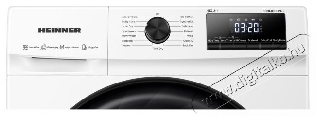| Tulajdonság | Gyermekzár Többszörös szűrő Szárítási szint kiválasztása Szösz szűrő tisztítása kijelző Teli víztartály jelző Sport cipő Gyűrődésgátló funkció Késleltetett indítási funkció (1-23 óra) Kád világítás |