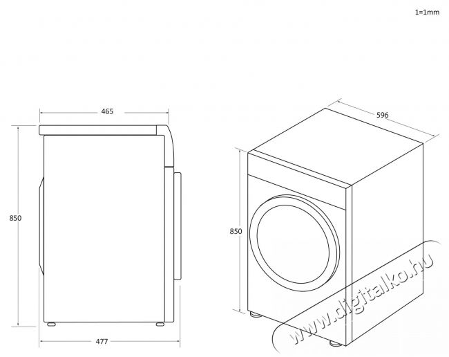 - kWh/annum: éves energiafogyasztás, ami évi 160 ciklusnak felel meg (szárítás heti kb. 3 alkalommal)