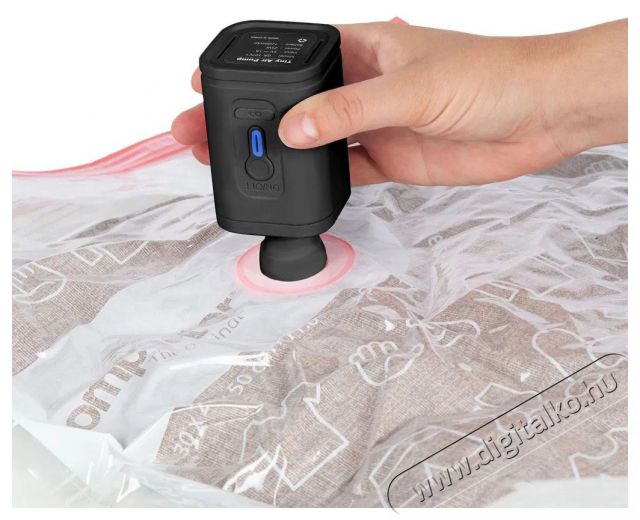 A Compactor szivattyú egyetlen gombnyomásra kiszívja a levegőtA Compactor utazási vákuumszivattyú négy különböző feltéttel rendelkezik, amelyeket különféle célokra és felszerelésekhez használhatsz. Egyszerűen kezelhető. Csak csatlakoztatnod kell a vákuumtasakhoz vagy más szelepes tárgyhoz, bekapcsolni a gombot, és máris kiszívja az összes levegőt. Ugyanígy választhatod a felfújás funkciót is, amellyel a tárgyat levegővel felfújja. A Compactor utazási vákuumszivattyút használhatod otthon, utazás közben vagy kempingezéskor is.