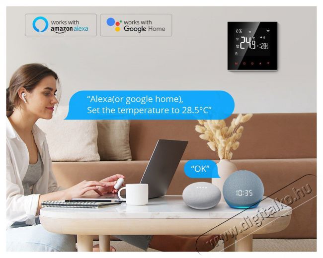 Más intelligens termékekhez hasonlóan az AVATTO ZWT100-16A termosztát is kompatibilis a Google Assistant és az Amazon Alexa hangalapú asszisztensekkel.