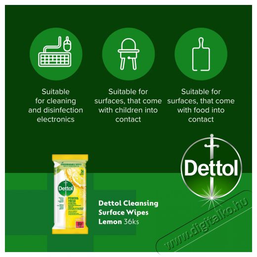 Dettol antibakteriális felülettisztító, citrom illatú, 36 darab