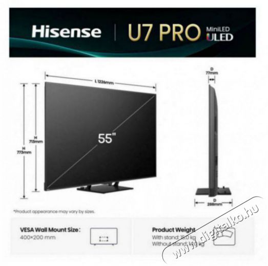 55" Hisense 55U7Q PRO televízióFedezd fel a csúcskategóriás Hisense televíziót, amely az otthoni szórakoztatás határait feszegeti. A legmodernebb AI technológiával, lélegzetelállító látványvilággal, ultra-zökkenőmentes, akár 165 Hz-es játékélménnyel és 2.1.2 térhatású hangzással ez a modell igazán átfogó audiovizuális élményt nyújt. Akár filmet vagy meccset nézel, akár kihívásokkal teli játékkal játszol, a kép mindig éles, a színek valósághűek lesznek, a hang pedig szó szerint körülvesz téged. Merülj el az IMAX és Pantone minősítésű képben, amelyet mesterséges intelligenciával és okos funkciókkal egészítettek ki a mindennapi használat megkönnyítése érdekében.