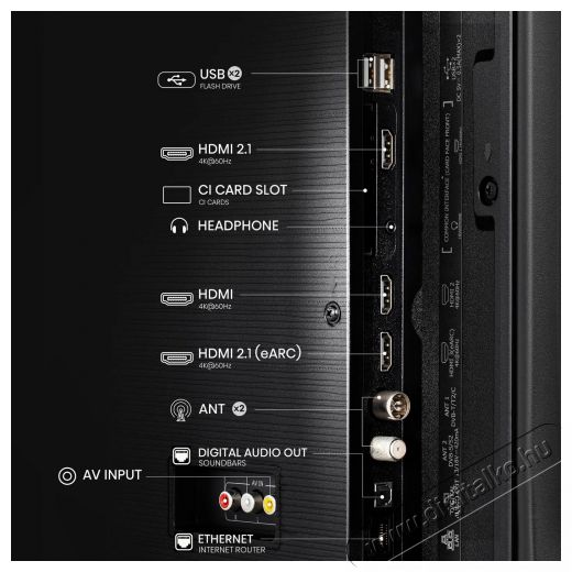 | Be- és kimenetek | CI+, Fejhallgató kimenet, HDMI 2.1, Komponens, LAN, USB |