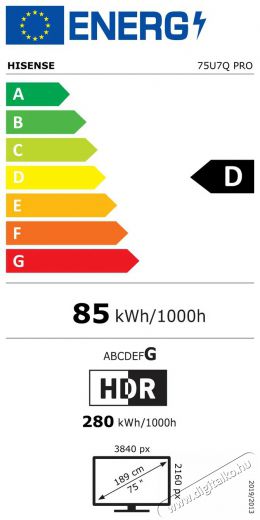 | Energiahatékonysági osztály HDR esetén | G |