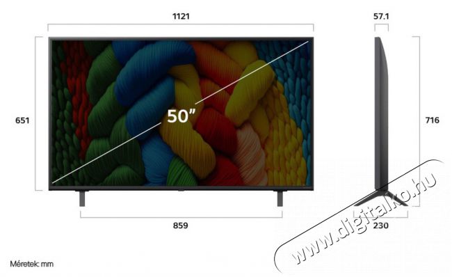 | Méretek állvány nélkül | 1121 x 57.7 x 651 mm |