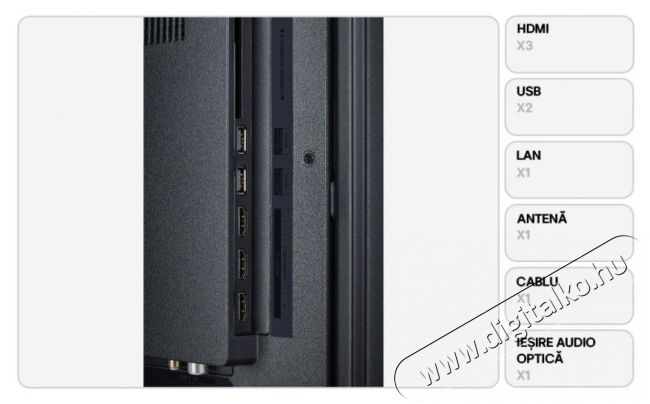 | Interfész | 2 x USB 1 x RJ-45 3 x HDMI CI+ slot |