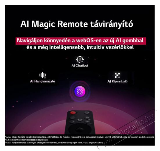 Valós idejű problémamegoldás az AI Chatbot segítségévelAz AI Magic Remote távirányítón keresztül elérheti az AI Chatbotot, amely segítségére lesz a megfelelő beállítások megtalálásától a különböző problémák megoldásáig.