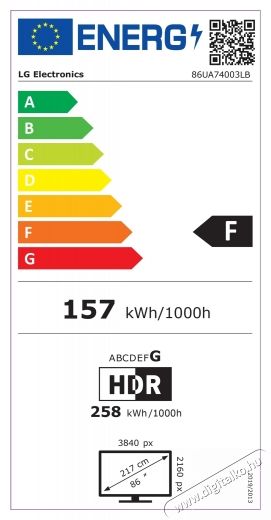| Villamosenergia-fogyasztás HDR módban / 1000 óra | 258 kWh |
