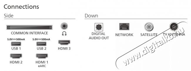 2.3, HDMI ARC,eARC/ VRR/ ALLM), 2x USB A, Tv antenna/Szatelit,CI, 3.5mm Jack,