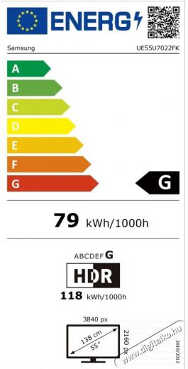 | Energiahatékonysági osztály HDR esetén | G |