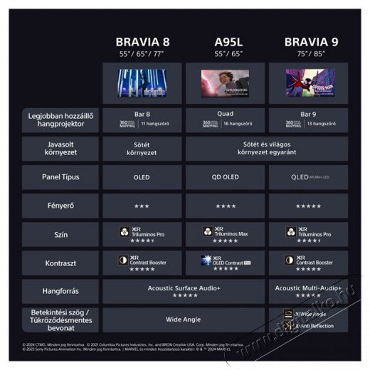 | Képfeldolgozás | Live Colour™ | OLED XR Contrast Pro | Pixel Contrast Booster | XR HDR Remaster | XR OLED Motion | XR Smoothing | XR Triluminos Pro™ |