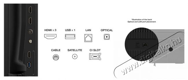 | Be- és kimenetek | CI+, CI+ 1.4, Digitális optikai/digitális hangkimenet, HDMI 2.1, LAN, USB |