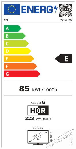 | Energiahatékonysági osztály HDR esetén | G |