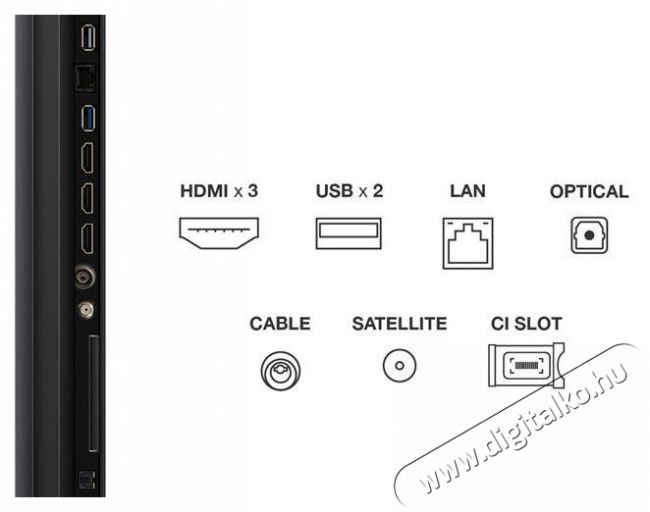 | Be- és kimenetek | CI+, CI+ 1.4, Digitális optikai/digitális hangkimenet, HDMI 2.1, LAN, USB |