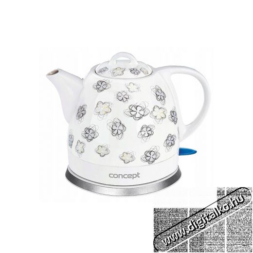 Még sosem volt ilyen egyszerű összepárosítani a művészetet és a funkcionalitást. Hála ennek a cseh CONCEPT márkájú vízforraló kannának Önnek biztosan sikerül. Ez a visszafogott virágmintás díszítésű kanna sok konyha díszévé válhat. A 0,8 liter térfogatú kerámia tartályra ráadásul nem jellemző az a jellegzetes szag, amit egy műanyag kannánál érezhetnénk. Biztonságos használat érdekében a vízforraló automatikus kikapcsolás funkcióval van felszerelve.