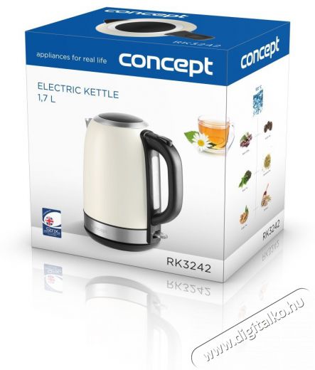 - A Concept RK3242 vízforraló rendkívül tartós rozsdamentes acélból készült