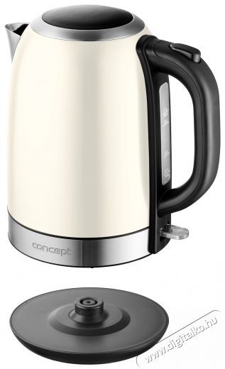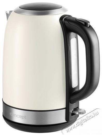 A Concept vízforraló minden otthonban hasznos leszA Concept RK3242 vízforraló rendkívül tartós rozsdamentes acélból készült, amely hosszú ideig fog szolgálni. A vízforraló bézs színű megjelenése tökéletesen illeszkedik konyhád berendezéséhez. A vízforraló töltésenként akár 7 csésze víz elkészítésére is képes. A vízforralón lévő vízjel tökéletes áttekintést nyújt a vízforralóban lévő víz mennyiségéről. A kapcsolóban található egy működési lámpa is, amely a vízforraló bekapcsolásakor világít.