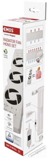 EMOS MONO radiátor alá helyezhető ventilátor, fehér Nem szereted a hideget? Az EMOS MONO radiátor alá helyezhető ventilátor gyorsabb és egyenletesebb hőeloszlást biztosít a helyiségben, csökkentve ezzel a termosztát magas hőmérsékletének szükségességét. A ventilátor két fokozatú áramlási sebességet és automatikus be-/kikapcsolási funkciót kínál. A fő előnyök közé tartozik az egyszerű telepítés és a legtöbb fűtőelemhez való csatlakoztatás lehetősége. Ez a típusú EMOS ventilátor legfeljebb 30 m³-es helyiségekbe alkalmas, a csendes működés (mindössze 20 dB) pedig biztosan kellemes meglepetést nyújt.