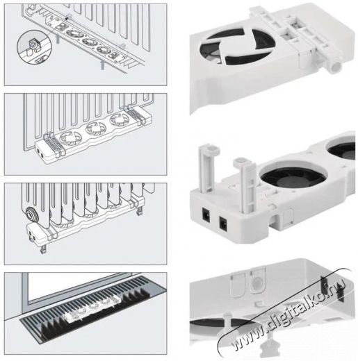 A ventilátor bővítő készlet egyszerű telepítése Az EMOS ventilátor bővítő készlet beszerelése a radiátor alá egyszerű, és nem igényel szerszámokat vagy szakszerű beszerelést. A készlet gyorsan rögzíthető a legtöbb fűtőtesthez mágnesek vagy lábak segítségével.