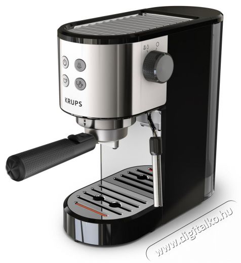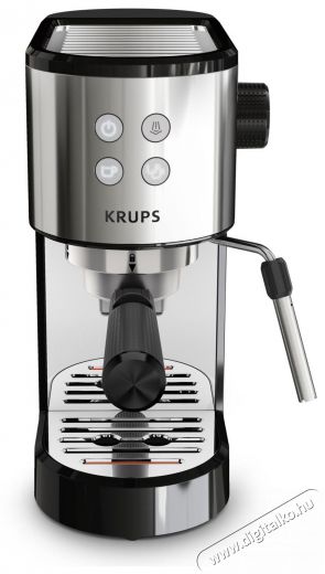 KRUPS XP441810 Virtuoso Essentialkaros kávéfőzőAz elegáns KRUPS XP441810 Virtuoso Essential karos kávéfőzővel gyerekjáték lesz a teljes ízű és jellegzetes aromájú kávé elkészítése. Az egyszerű kezelést 4 intuitív gomb biztosítja. A KRUPS Thermoblock rendszer gyors felmelegedést biztosít, míg a professzionális 15 bar nyomás precíz kávékivonást garantál. A karos kávéfőzőhöz barista tartozékok tartoznak - mérőkanál, tamper és szűrők egy vagy két csésze kávéhoz. A KRUPS XP441810 gőzfúvókával van felszerelve a tej felhabosításához cappuccino vagy latte macchiato elkészítéséhez.