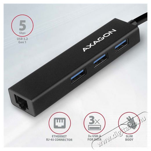 Az AXAGON HMA-GL3A vékony fémből készült USB 3.2 Gen 1 (USB 3.0) többportos elosztó akár három USB-eszközt csatlakoztathat laptophoz vagy számítógéphez, és hozzáad egy Gigabit hálózati kártyát, amely összeköti a számítógépet a nagy sebességű hálózattal.A fém hub teste alumíniumból készült és tökéletes mechanikai védelmet nyújt a gyakori hordozáshoz. Elegáns, finom felület az ujjlenyomatok ellen. A tartósan rögzített 20 cm hosszú USB-kábel ideális a mobil eszközök felhasználói számára.