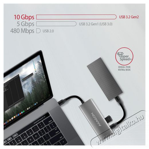 A Superspeed USB-C 3.2 Gen 2 hub AXAGON HMC-5G2 SPEEDSTER 5H öt porttal bővíti laptopját, számítógépét vagy telefonját. A kétoldalas USB-C csatlakozóval egyszerre és gyorsan akár négy USB-eszközt és HDMI kimenettel csatlakoztathat a számítógépéhez. Arra is lehetősége van, hogy laptopot töltsön a Power Delivery technológiával. A hub egyszerű és kompakt laptop dokkoló állomást kínál Önnek. Az USB hub összesen négy USB kimenetet biztosít - kettőt szabványos USB-A csatlakozókkal és kettőt modern USB-C csatlakozókkal. A fejlett USB 3.2 Gen 2 interfésznek köszönhetően nagy sebességű eszközöket, például az NVMe M.2 külső meghajtókat csatlakoztathat minden kimenethez, akár kétszer nagyobb 10 Gb/s sebességgel a szokásos 1. generációs hubokhoz képest, melyek csak 5 Gb/s sebességgel működnek. Az elosztó egyidejűleg képes kezelni több külső meghajtót, és az USB-C portok lehetővé teszik a telefonok és táblagépek töltését 3A-ig.