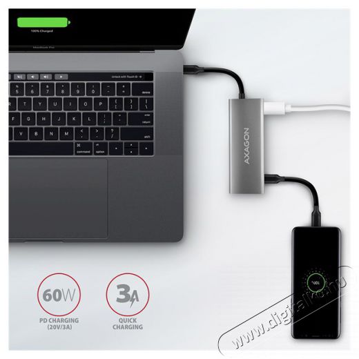 A HDMI kimenet kiváló minőségű képet biztosít akár 4K/30Hz Ultra HD felbontásig, és támogatja a többcsatornás audioátvitelt. A DisplayPort alternatív mód (DP Alt mód) kompatibilis USB-C portra vagy a Thunderbolt 3 portra szükség van a video kimenet megfelelő működéséhez. A kompakt és vékony alumínium ház jól néz ki, ugyanakkor biztosítja a mechanikai ellenállást és a jó hűtést is. A finoman strukturált, ujjlenyomatmentes felület szintén kiváló.