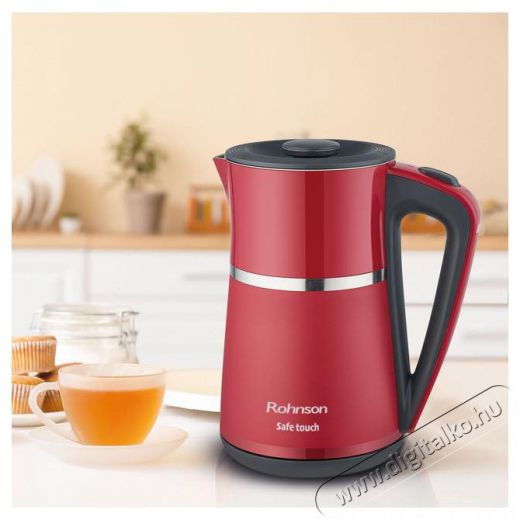Rohnson R-7524 Safe Touch Eme 1,7 lűrtartalommal rendelkező Rohnson Vízforraló biztosítja az italok egyszerű és gyors elkészítését. A vízforralót rozsdamentes acélból állították elő, nem tartalmaz , nem kívánatos, egészségre ártalmas anyagokat, és nem tartja meg a kellemetlen szagokat vagy ízeket. Duplafalú kialakítással rendelkezik, ami megakadályozza, hogy a felülete túl magas hőmérsékletet érjen el, ezért nem kell aggódnunk, hogy megéget bennünket. A biztonságosabb működésért olyan berendezés felel, mint automatikus kikapcsolás kevés víz esetén és a forráspont elérésekor. A fűtőspirál az aljában van elrejtve, amely megvédi azt a vízkő lerakódásától.