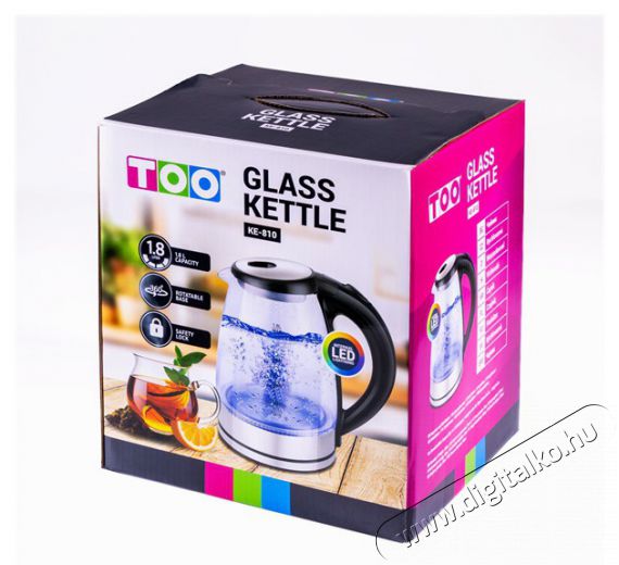 Too KE-810 1,8L-es ezüst üveg vízforraló