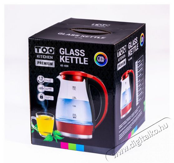 Too KE-820 1,7L-es piros prémium üveg vízforraló