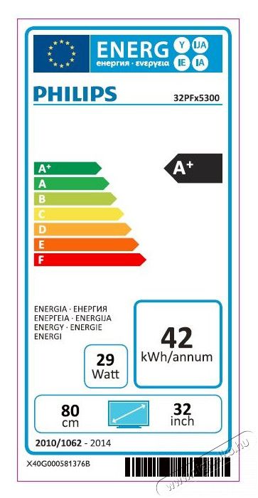 - Energiafogyasztás kikapcsolt módban - < 0,3 W