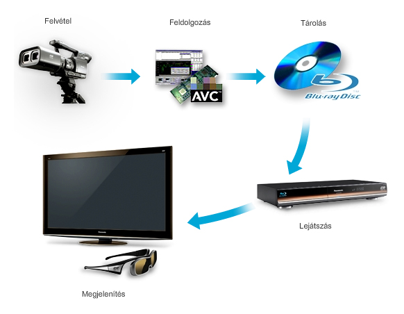 A 3D-tartalom létrehozása után az adatokat tömörítik, majd kódolva Blu-ray lemezre írják, melynek reprodukciójához a Panasonic Full HD 3D Blu-ray lejátszót kínál. A lejátszó HDMI-kábelen keresztül csatlakoztatható a Panasonic Full HD 3D televíziókhoz, s így a tartalom – a Panasonic aktív rekeszes 3D-szemüvegén keresztül – megtekinthető a tévékészülék képernyőjén.