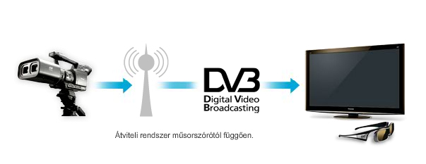 Az élő esemény vagy műsor felvétele után a háromdimenziós adatokat egy adóállomás segítségével továbbítják a tévénézők otthonába. Arról, hogy a készülékek képesek legyenek az ilyen adások vételére, a Digital Video Broadcasting (DVB) szabvány gondoskodik. Mivel a Panasonic Full HD 3D televíziói beépített tv-tunerrel rendelkeznek, a 3D-adások megjelenítéséhez további berendezésekre nincs szükség.