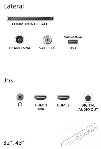 | Interfész | 1 x USB 1 x Jack 3.5 mm CI+ slot 2 x HDMI 2.0 1 x Optical Audio Output |