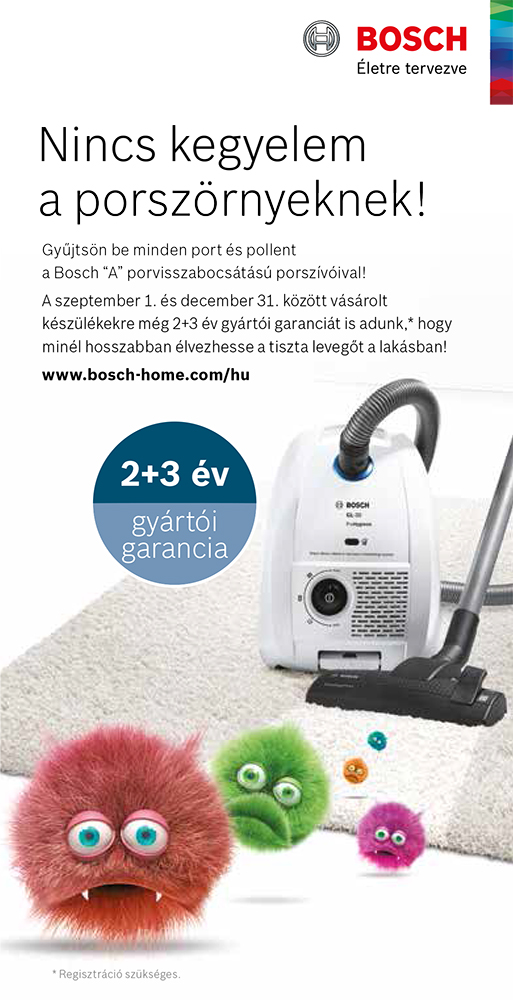 Bosch weboldalán történő regisztráció után - az eredeti 2 éven túl további 3 év gyártói garanciát adunk, hogy minél hosszabban élvezhesse a tiszta levegőt a lakásban!
