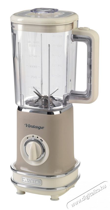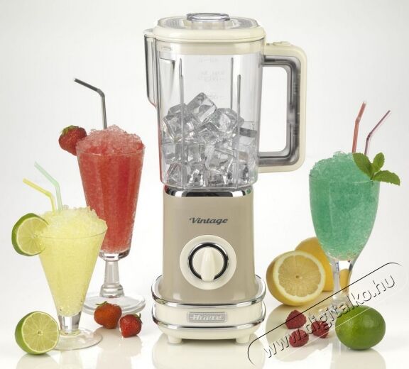 A Vintage turmixgép az 500W teljesítményével gyors és finom smoothie-k készítését teszi lehetővé. A 1,5 literes kehelyt fejjel lefelé fordítva könnyen tárolható a készülék és kisebb helyiségekben is használható. A 6 rozsdamentes acél pengével ellátott készülék tökéletes a jégtöréshez, koktélok készítéséhez és hideg italokhoz.