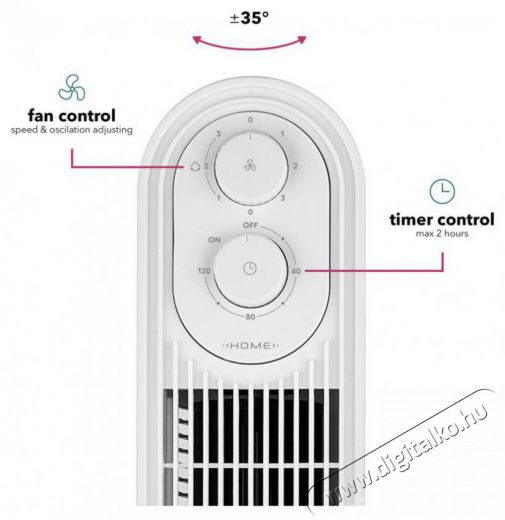 A Home FN-T600W Easy Breeze egyszerű kezeléseA készülék tetején található két tekerőgombbal minden kényelmesen beállítható. A légcsavar nélküli Home FN-T600W Easy Breeze ventilátor emellett lenyűgöz a kiváló minőségű kialakításával, a megbízható, keverék nélküli, 100% rézmotorral vagy a maximális stabilitást biztosító robusztus kerek talppal.