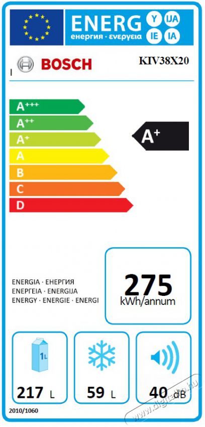 | Bosch KIV38X20 adatai: |