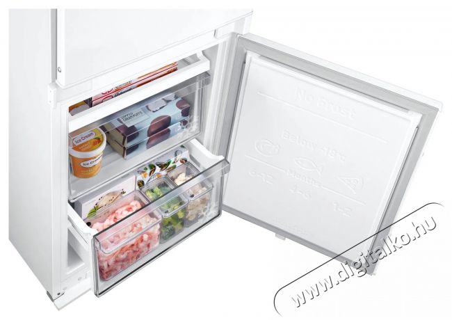 Samsung Beépíthető Kombinált Hűtőszekrény – SmartThings okosvezérléssel, Metal Cooling technológiávalA modern konyhák egyik alapdarabja lehet ez a Samsung beépíthető kombinált hűtőszekrény, amely ötvözi a letisztult dizájnt, az okos funkciókat és az energiatakarékos működést. A készülék tökéletes választás lehet, ha helytakarékos, mégis tágas és hatékony megoldásra van szükséged – ráadásul olyan extrákkal, mint a Metal Cooling, a No Frost és a SmartThings kompatibilitás.
